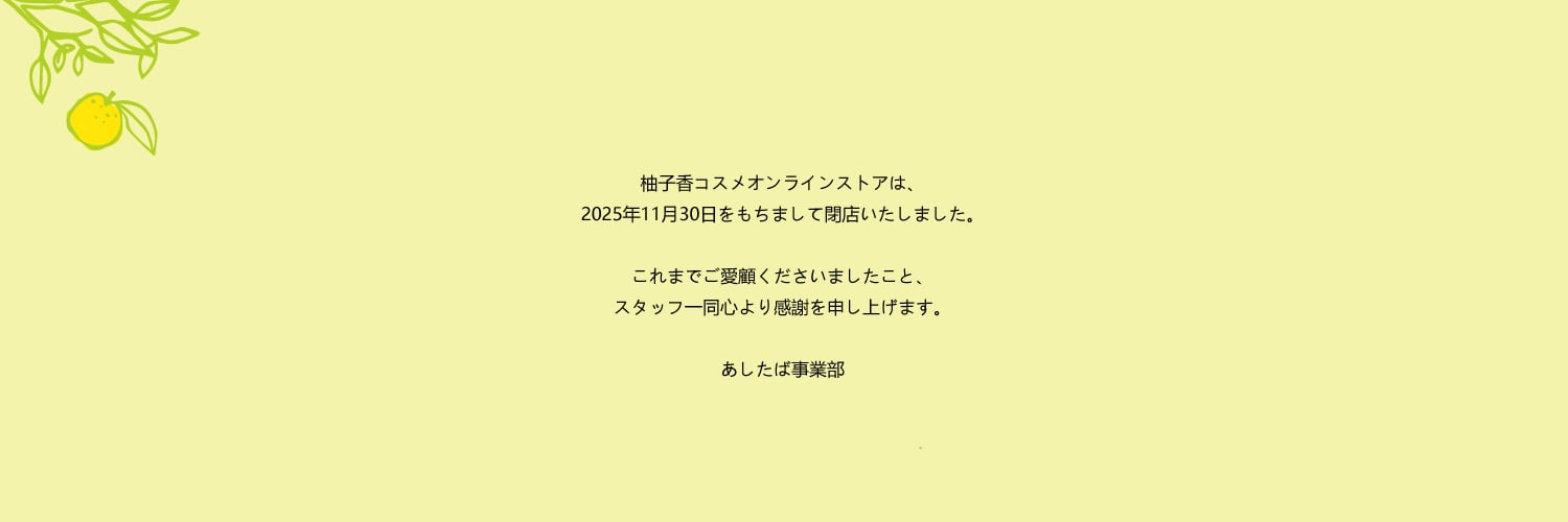 突然のお知らせとなりますが、このたび2025年11月末をもちまして閉店する運びとなりました。これまでたくさんのお客様に柚子香コスメをご愛用ただきましたこと、スタッフ一同心より感謝申し上げます。
